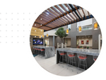 - Hospitality environment and collaborative soft seating throughout